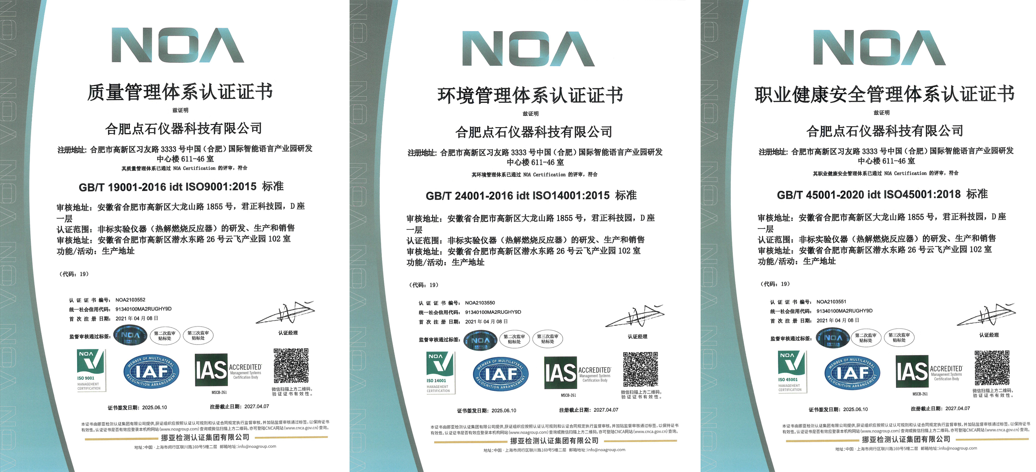 近日,點(diǎn)石儀器再次順利通過ISO“三體系”——質(zhì)量管理體系(ISO9001)、環(huán)境管理體系(ISO14001)、職業(yè)健康安全管理體系(ISO45001)認(rèn)證年審。