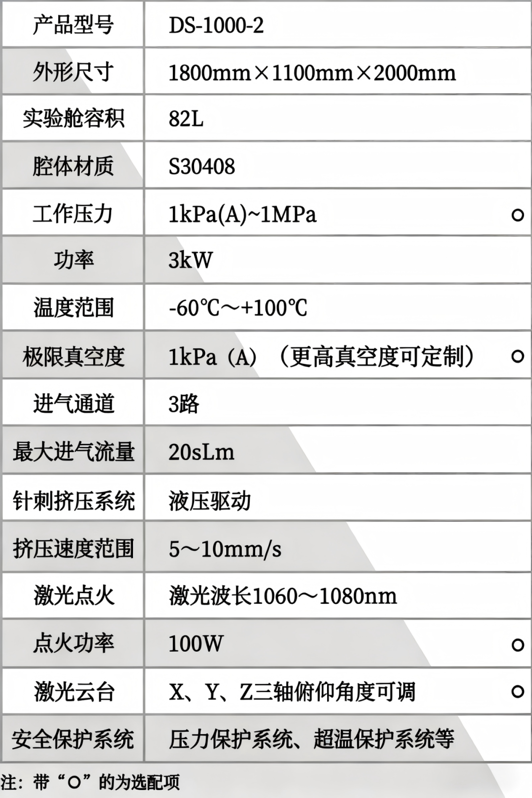 綜合實驗艙可實現多種環境要素(溫度、壓力、氣氛等)耦合,對電池進行多類測試(針刺、擠壓、過充、過放、短路、溫度循環、點火、滅火),用于電芯及小型電池模組的綜合性能測試。