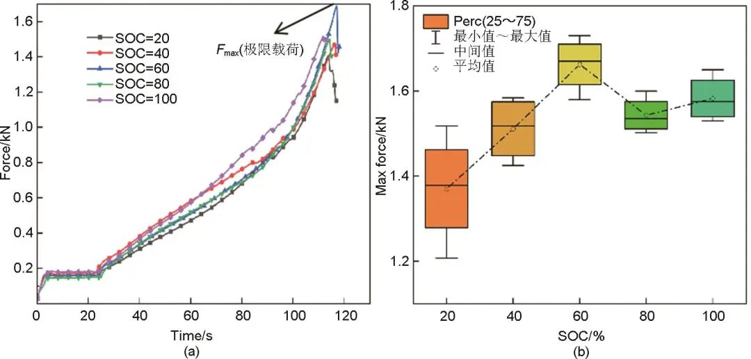 圖3 (a)載荷-時間曲線;(b)鋰電池極限載荷箱線圖
