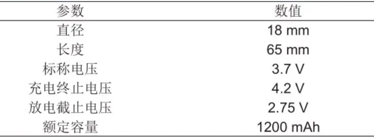 實驗選用某國產18650圓柱形鋰離子電池,鋰電池參數如表1所示。利用電池測試系統采用恒流恒壓方式將鋰電池充放電至實驗所需SOC。