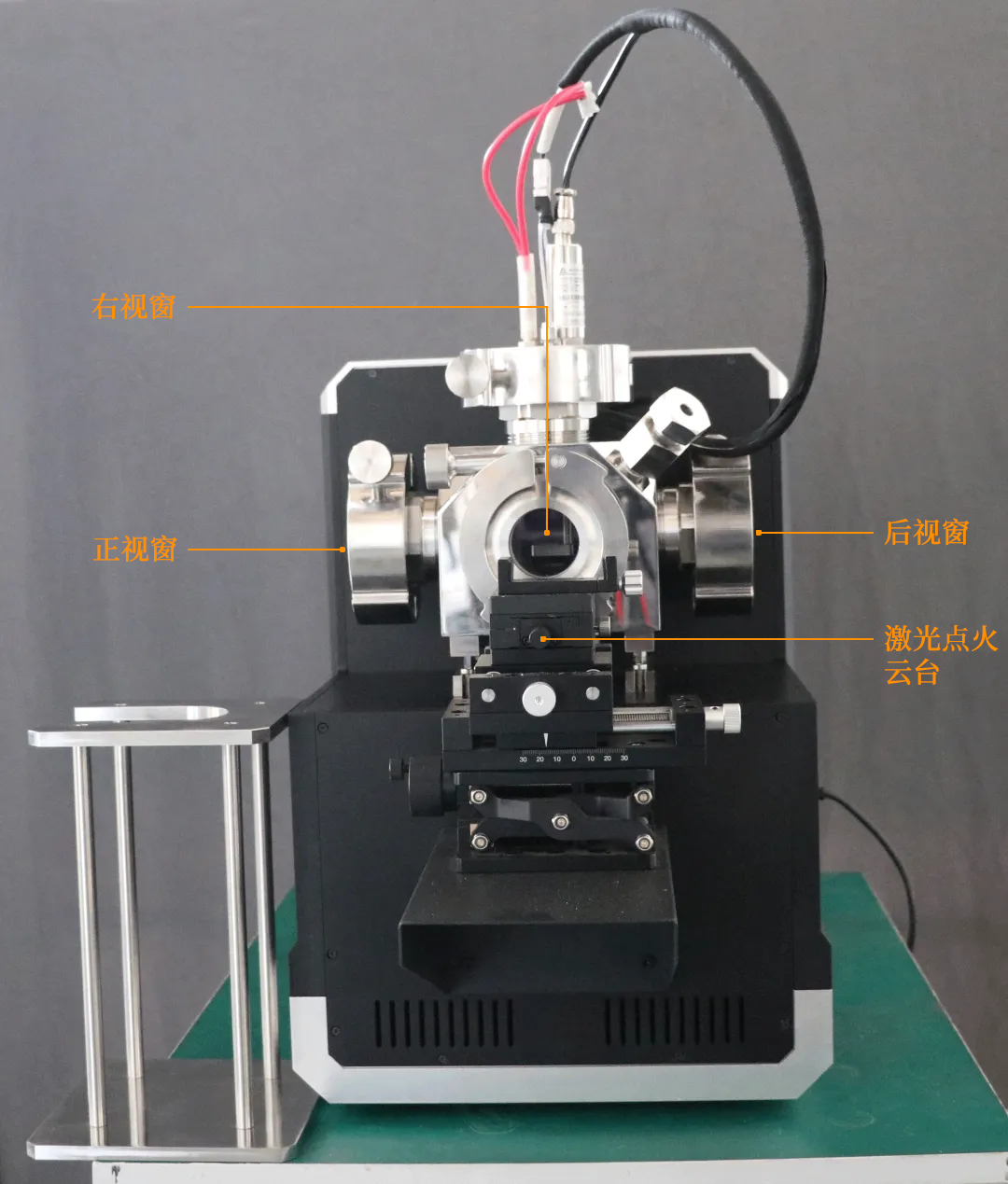 燃燒室設有3個觀察視窗。視窗分布于燃燒室正面、右面、背面。其材質(zhì)為藍寶石玻璃,具備高強度和高透光性。